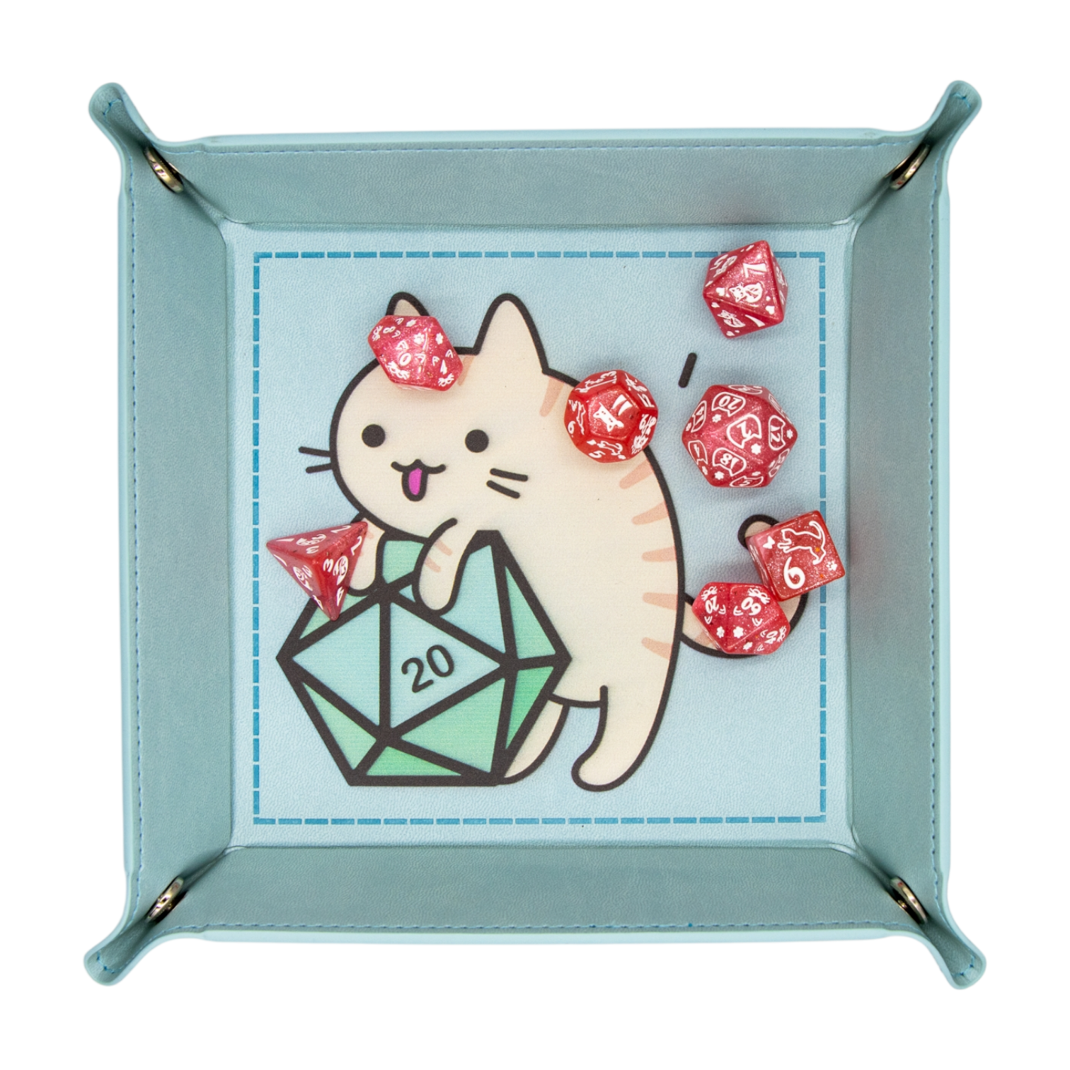 Farbe: Hellblau mit einer Katze & D20